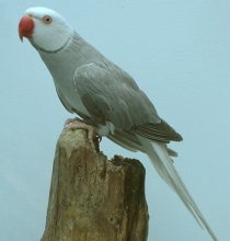 or White, brighter around the beak; neck ring grey with rose or white in cocks.