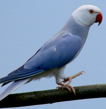 or White, brighter around the beak; neck ring grey with rose or white in cocks.